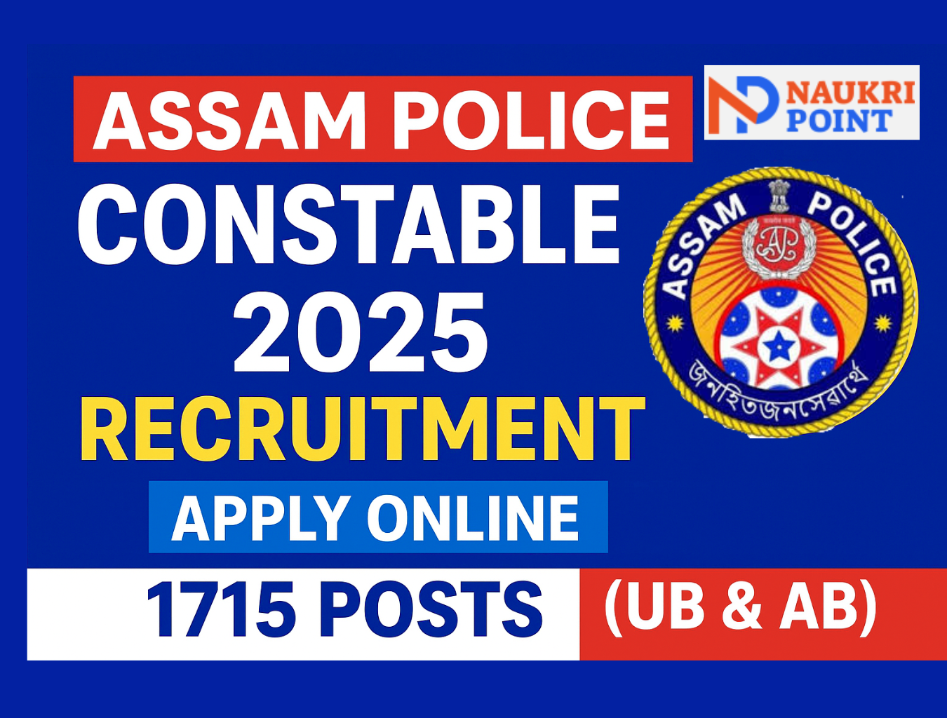 State Level Police Recruitment Board (SLPRB), Assam ने Unarmed Branch (UB) और Armed Branch (AB) में कुल 1715 Constable पदों की भर्ती शुरू कर दी है।