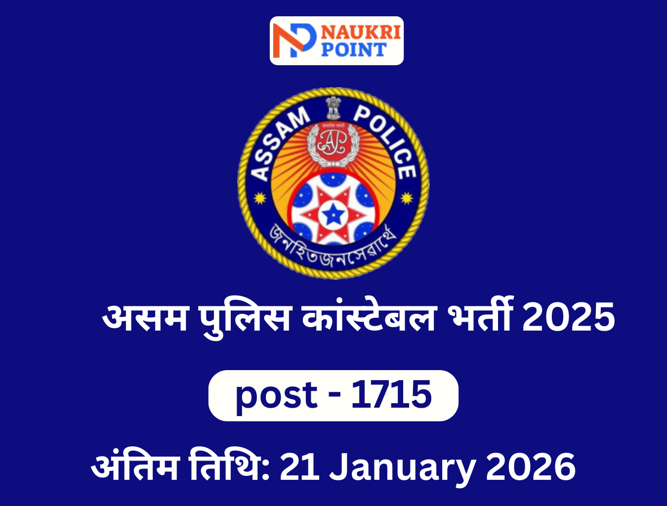 - नौकरी स्थान: असम (किसी भी जिला/इकाई में)