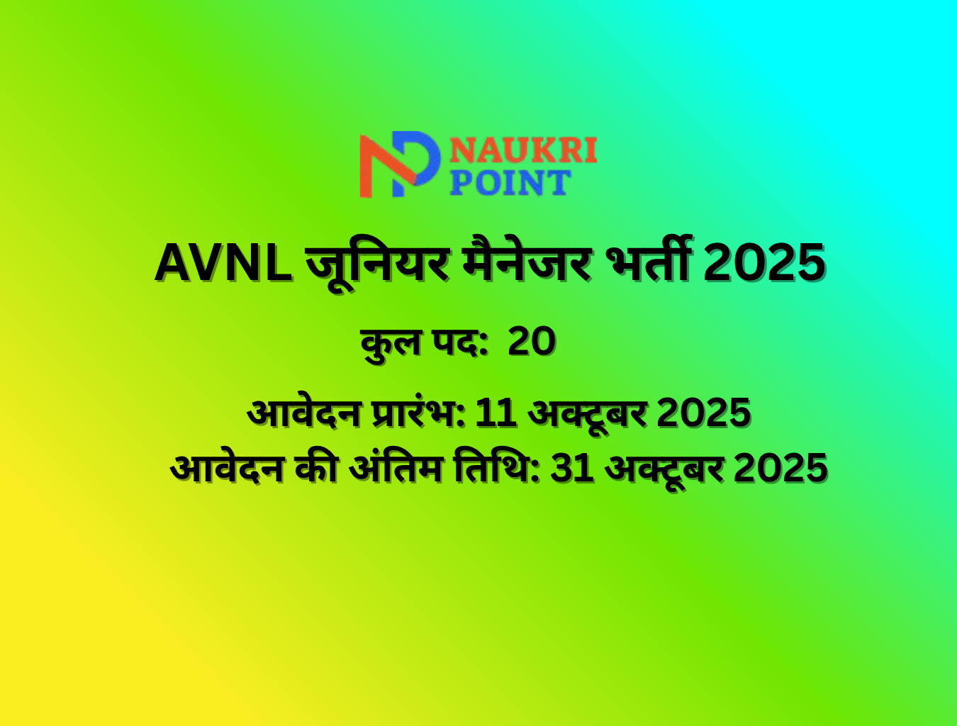 Armoured Vehicles Nigam Limited (AVNL) ने Engine Factory, Avadi, Chennai में Junior Manager और Assistant Manager पदों के लिए भर्ती निकाली है। यह भर्ती फिक्स्ड टर्म कॉन्ट्रैक्ट (2 साल) के लिए है, जो प्रदर्शन और आवश्यकताओं के अनुसार बढ़ाई जा सकती है।