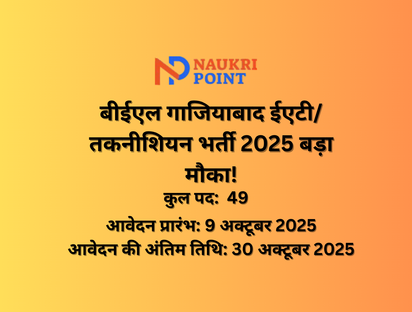 Bharat Electronics Limited (BEL), Ghaziabad ने Engineering Assistant Trainee (EAT) और Technician ‘C’ पदों के लिए भर्ती का ऐलान किया है। यह मौका उन लोगों के लिए है जिनके पास Diploma या ITI है और जो Ministry of Defence के तहत आने वाले प्रतिष्ठित PSU में स्थायी नौकरी चाहते हैं।