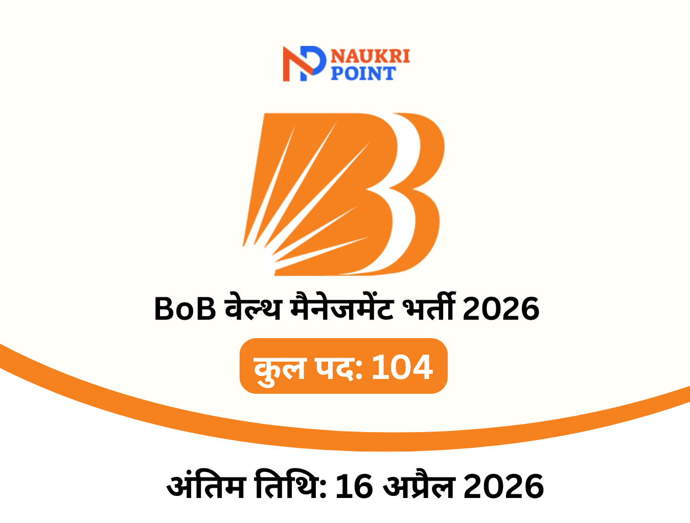 बैंक ऑफ बड़ौदा (BoB) ने अपने वेल्थ मैनेजमेंट सर्विसेज डिपार्टमेंट में 104 पदों पर भर्ती का नोटिफिकेशन जारी कर दिया है। ये AVP II और Deputy Manager स्तर के संविदा आधारित पद हैं। अगर आपके पास वेल्थ मैनेजमेंट, रिलेशनशिप मैनेजमेंट या इन्वेस्टमेंट एडवाइजरी का अनुभव है तो यह भारत के प्रमुख सार्वजनिक क्षेत्र के बैंकों में से एक में शामिल होने का शानदार मौका है।