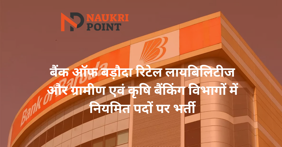 बैंक ऑफ बड़ौदा रिटेल लायबिलिटीज और ग्रामीण एवं कृषि बैंकिंग विभागों (2025) में नियमित पदों के लिए योग्य उम्मीदवारों से ऑनलाइन आवेदन आमंत्रित करता है। 417 मैनेजर-सेल्स और एग्रीकल्चर सेल्स पदों के लिए 06.08.2025 से 26.08.2025 तक आवेदन करें। भर्ती के लिए आधिकारिक नोटिफिकेशन जारी किया है। इच्छुक और योग्य उम्मीदवार ऑनलाइन आवेदन कर सकते हैं। यह अवसर भारत के सबसे बड़े बैंकों में से एक के साथ एक चुनौतीपूर्ण करियर शुरू करने का है।
