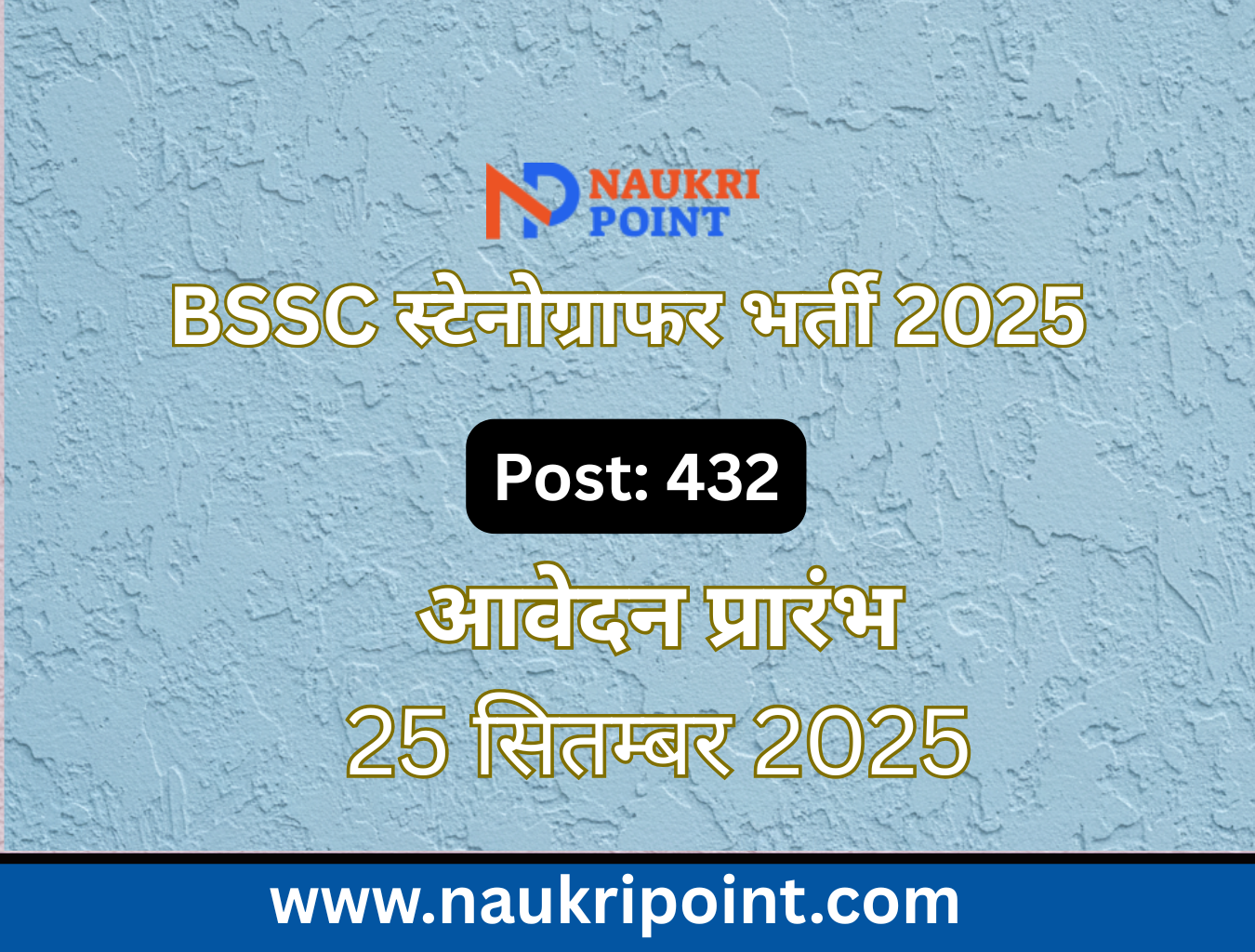 बिहार कर्मचारी चयन आयोग (BSSC) ने स्टेनोग्राफर और इंस्ट्रक्टर-स्टेनोग्राफर के 432 पदों के लिए भर्ती अधिसूचना जारी की है। इच्छुक उम्मीदवार 25 सितंबर 2025 से 24 नवंबर 2025 तक ऑनलाइन आवेदन कर सकते हैं। यह अवसर बिहार सरकार के विभिन्न विभागों में स्थायी नौकरी पाने का शानदार मौका है।