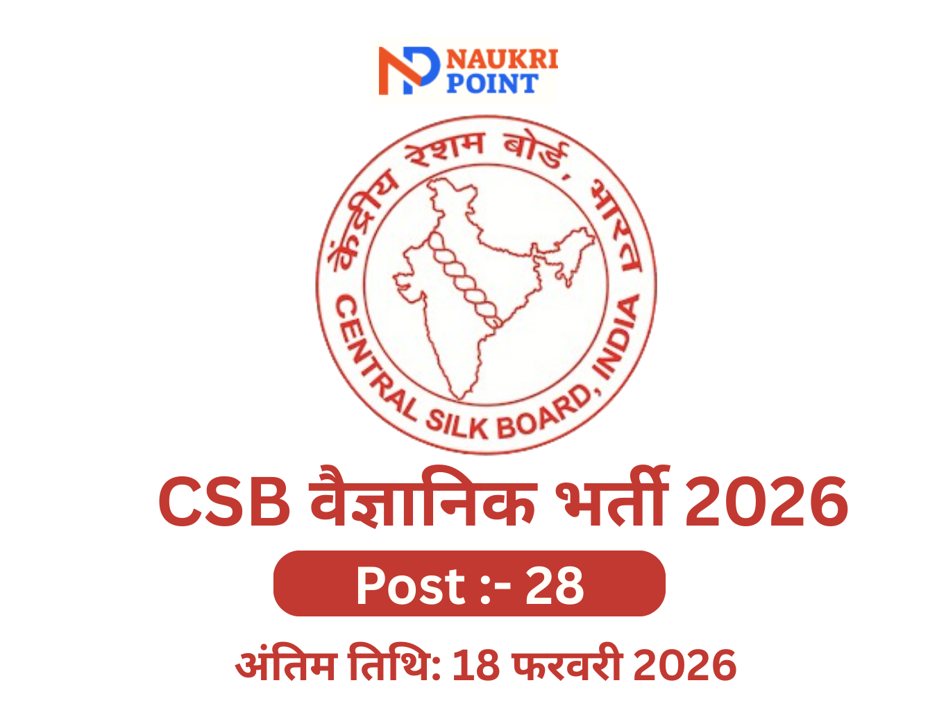 केंद्रीय सिल्क बोर्ड (CSB), वस्त्र मंत्रालय, भारत सरकार के अधीन एक सांविधिक निकाय ने विज्ञापन संख्या CSB/02/2024 के तहत Scientist-B (Post-Cocoon Sector) के 28 पदों पर भर्ती की विस्तृत अधिसूचना जारी कर दी है।यह डायरेक्ट रिक्रूटमेंट के माध्यम से स्थायी सरकारी नौकरी का शानदार अवसर है। यदि आपके पास टेक्सटाइल टेक्नोलॉजी में B.E./B.Tech डिग्री है और GATE-2025 में वैध स्कोर है, तो यह आपके लिए सुनहरा मौका है।कोई अलग लिखित परीक्षा नहीं होगी – चयन केवल GATE-2025 स्कोर + साक्षात्कार के आधार पर होगा।