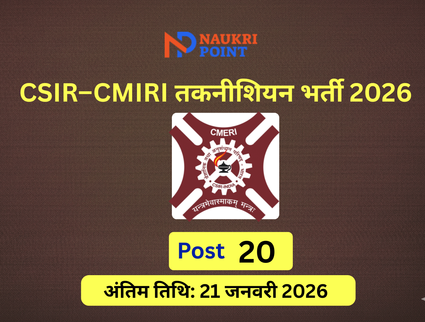 यदि आपने आईटीआई किया है और एक स्थायी केंद्र सरकार की नौकरी की तलाश में हैं, तो सीएसआईआर–केंद्रीय यांत्रिक अभियांत्रिकी अनुसंधान संस्थान (सीएमईआरआई), दुर्गापुर द्वारा निकाली गई यह भर्ती आपके लिए एक बेहतरीन अवसर है।