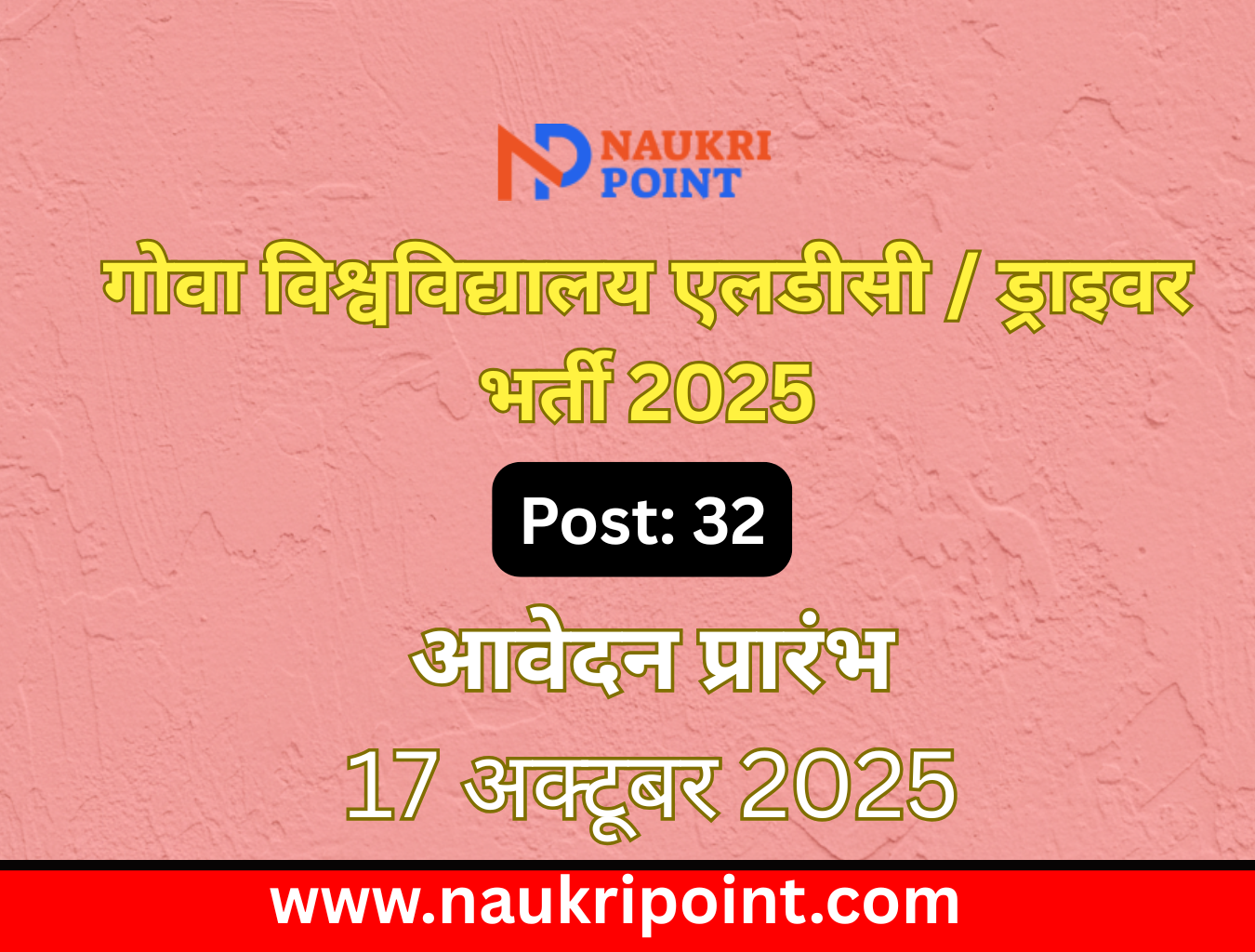 गोवा विश्वविद्यालय ने वर्ष 2025 के लिए एलडीसी (Lower Division Clerk), ड्राइवर (HMV) और ड्राइवर (LMV) पदों के लिए नई भर्ती अधिसूचना जारी की है। यह भर्ती उन उम्मीदवारों के लिए सुनहरा अवसर है जो गोवा में स्थायी सरकारी नौकरी की तलाश में हैं। कुल 32 रिक्त पदों पर यह भर्ती की जा रही है। चयनित उम्मीदवारों को 7वें वेतन आयोग के अनुसार लेवल-2 (₹19,900 – ₹63,200) के वेतनमान पर नियुक्त किया जाएगा।