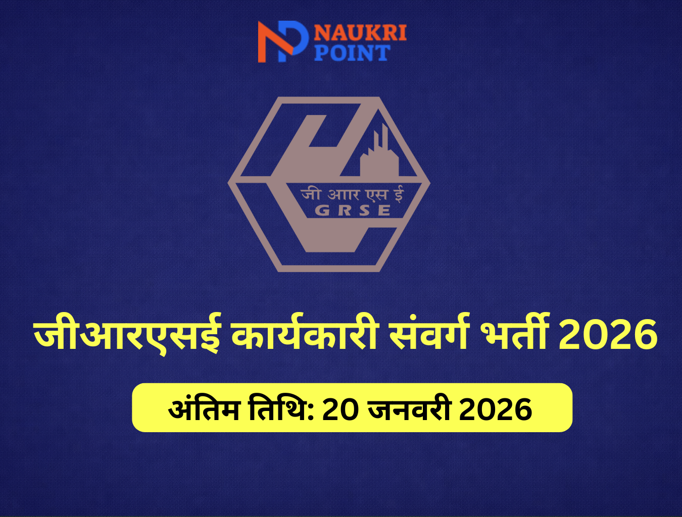 - भर्ती का नाम: जीआरएसई कार्यकारी संवर्ग भर्ती 2026