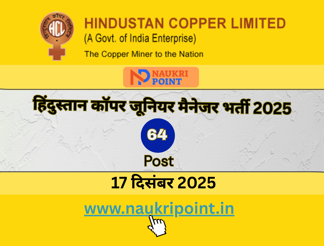 हिंदुस्तान कॉपर लिमिटेड (HCL) ने वर्ष 2025 के लिए विभिन्न इकाइयों में कार्य करने हेतु जूनियर मैनेजर पदों पर भर्ती के लिए ऑनलाइन आवेदन आमंत्रित किए हैं। यह भर्ती नियमित आधार पर की जाएगी।