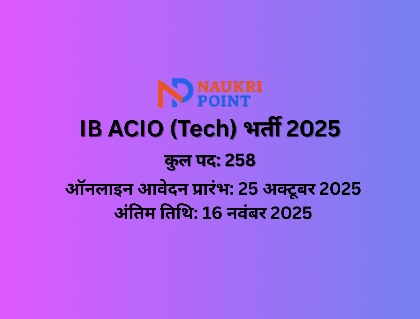 इंटेलिजेंस ब्यूरो (IB) ने MHA के तहत 258 ACIO ग्रेड II टेक पदों के लिए एक शॉर्ट नोटिस जारी किया है। ऑनलाइन आवेदन 25 अक्टूबर, 2025 से शुरू होने वाले हैं।