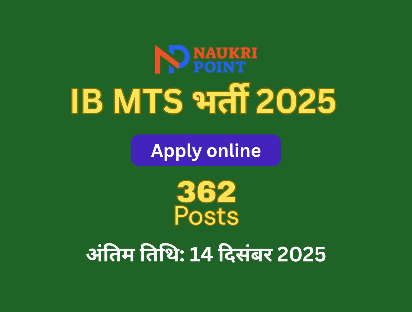 इंटेलिजेंस ब्यूरो (IB), गृह मंत्रालय (MHA) के अंतर्गत, ने Multi-Tasking Staff – General (MTS-G) के 362 पदों के लिए भर्ती नोटिफिकेशन जारी किया है।