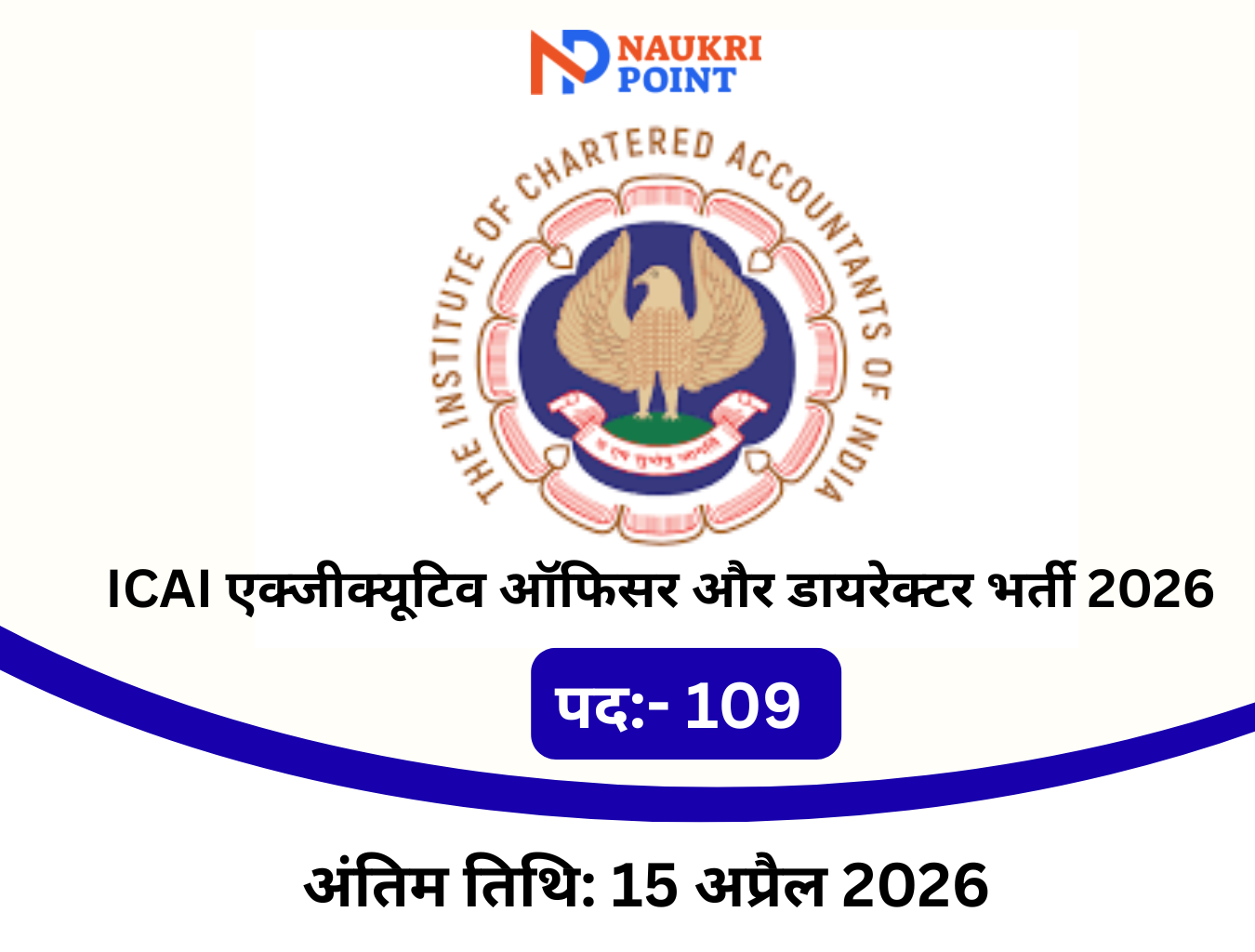 इंस्टीट्यूट ऑफ चार्टर्ड अकाउंटेंट्स ऑफ इंडिया (ICAI) ने एडवरटाइजमेंट नंबर 04/2026/HRD/03 जारी कर 109 पदों पर भर्ती का नोटिफिकेशन निकाला है।