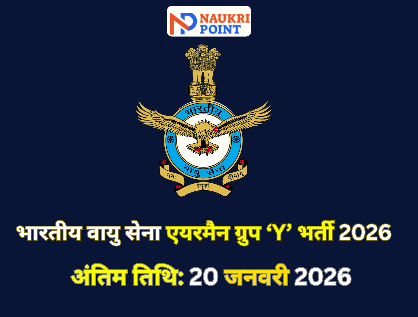 भारतीय वायु सेना (IAF) ने एयरमैन ग्रुप ‘Y’ (नॉन-टेक्निकल) मेडिकल असिस्टेंट ट्रेड के लिए इनटेक 01/2027 की आधिकारिक भर्ती अधिसूचना जारी कर दी है। यह भर्ती अग्निवीर योजना के अंतर्गत नहीं है, बल्कि यह स्थायी सेवा (Permanent Commission) का अवसर प्रदान करती है, जिसमें दीर्घकालीन नौकरी सुरक्षा और पदोन्नति की पूरी संभावनाएँ होती हैं।