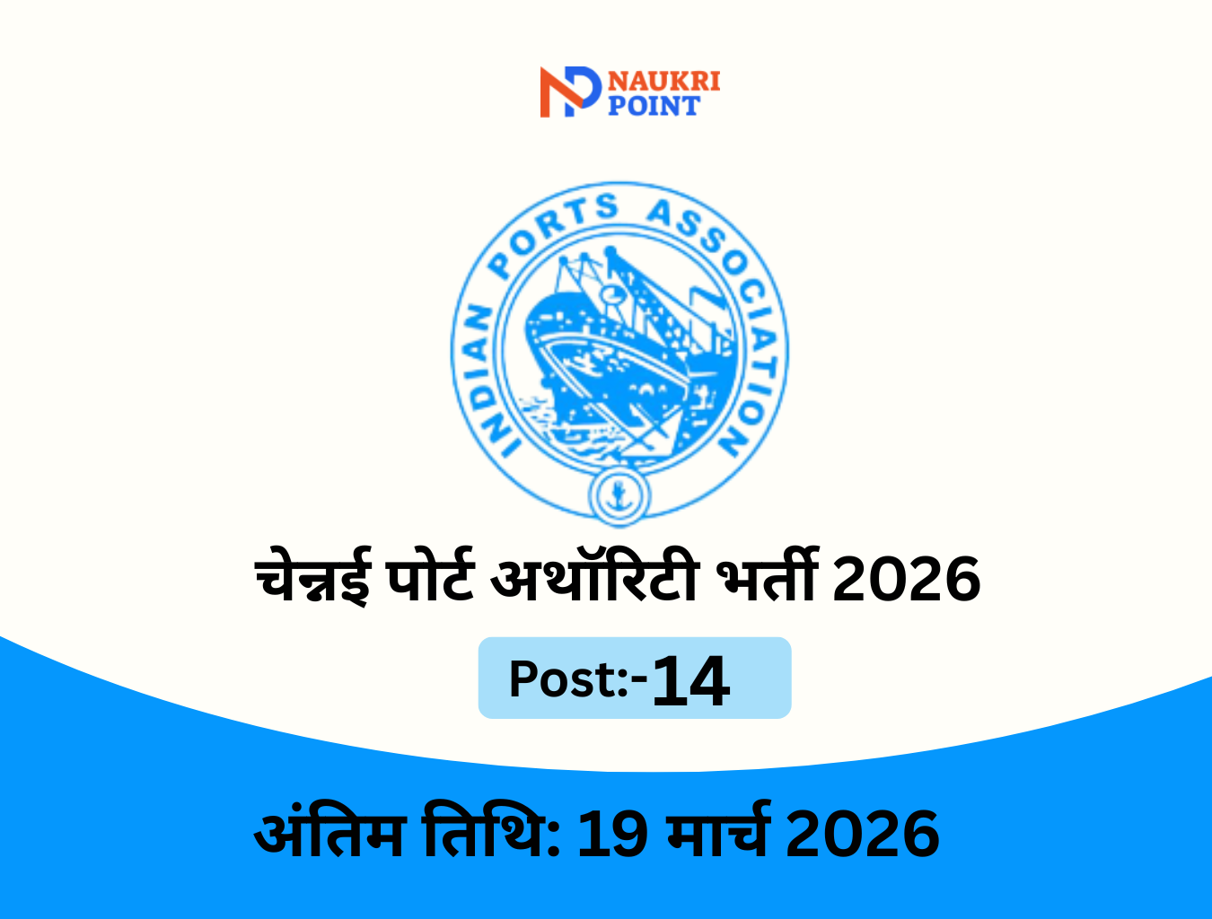 इंडियन पोर्ट्स एसोसिएशन (IPA) ने चेन्नई पोर्ट अथॉरिटी की ओर से 14 एग्जीक्यूटिव स्तर (क्लास-I एवं क्लास-II) के स्थायी पदों पर भर्ती की आधिकारिक अधिसूचना (विज्ञापन संख्या IPA/ChPA/2026/01, दिनांक 20 फरवरी 2026) जारी कर दी है। यह भारत के प्रमुख पोर्ट अथॉरिटी में वेलफेयर ऑफिसर, लॉ ऑफिसर, सीनियर अकाउंट्स ऑफिसर, डिप्टी ट्रैफिक मैनेजर, एग्जीक्यूटिव इंजीनियर आदि पदों के लिए है।