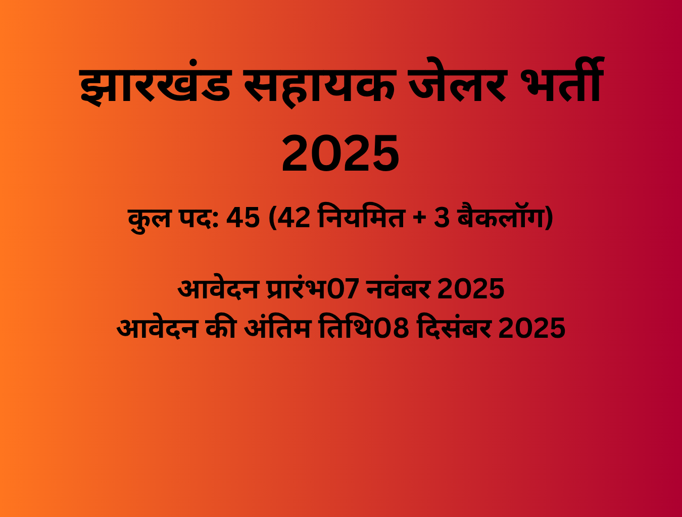 झारखंड सहायक जेलर भर्ती 2025: 45 पदों पर वैकेंसी, जानिए वेतन, योग्यता और आवेदन प्रक्रिया