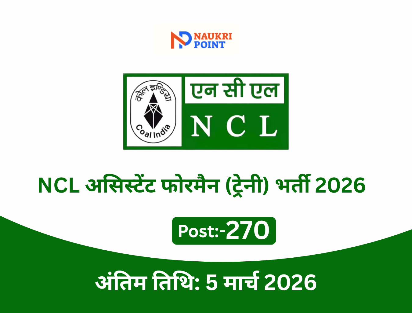 - संगठन: Northern Coalfields Limited (NCL) – Coal India Limited की सहायक कंपनी