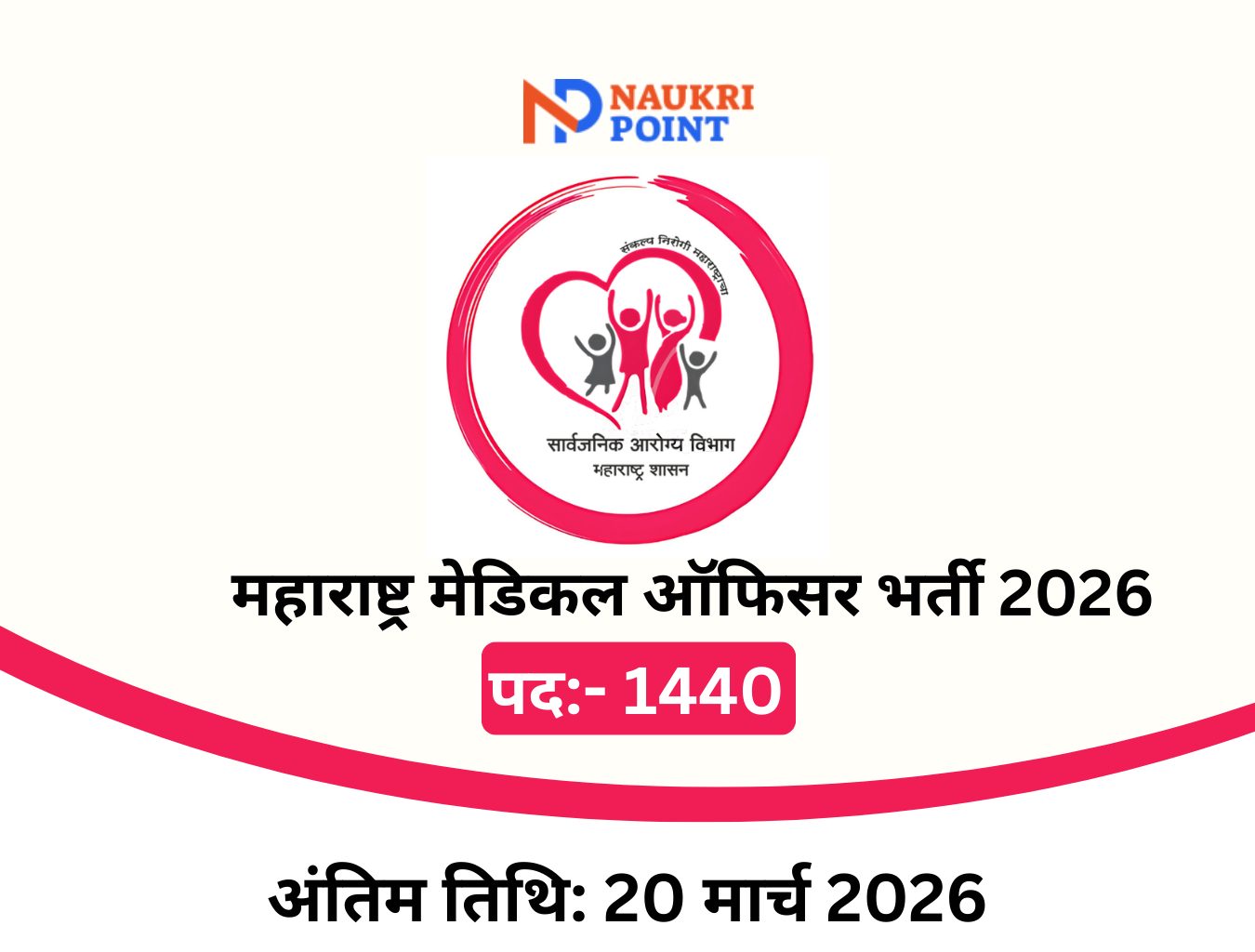 महाराष्ट्र राज्य सार्वजनिक आरोग्य विभाग ने मेडिकल ऑफिसर (MBBS एवं स्पेशलिस्ट) के 1,440 पदों पर भर्ती की आधिकारिक अधिसूचना (नोटिफिकेशन 01/2025) जारी कर दी है। यह MBBS पास और विभिन्न स्पेशलाइजेशन वाले डॉक्टर्स के लिए महाराष्ट्र सरकार में स्थायी नौकरी का बहुत बड़ा अवसर है।