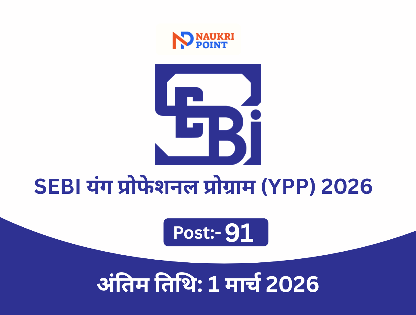 सिक्योरिटीज एंड एक्सचेंज बोर्ड ऑफ इंडिया (SEBI) ने यंग प्रोफेशनल प्रोग्राम (YPP) 2026 के लिए आधिकारिक अधिसूचना जारी कर दी है। यह फाइनेंस, लॉ, रिसर्च, आईटी और राजभाषा क्षेत्र के महत्वाकांक्षी ग्रेजुएट्स/पोस्टग्रेजुएट्स के लिए मुंबई स्थित SEBI मुख्यालय में काम करने का सुनहरा अवसर है।