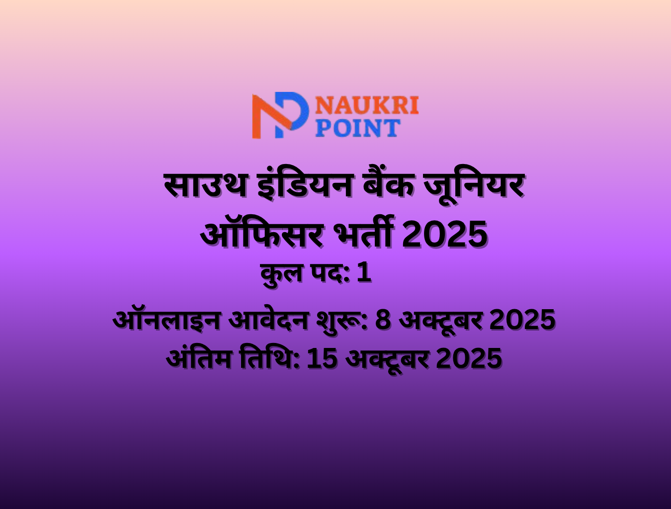 अगर आप बैंकिंग सेक्टर में शानदार करियर बनाना चाहते हैं, तो South Indian Bank (SIB) लेकर आया है 2025 के लिए Junior Officer / Business Promotion Officer की भर्ती।