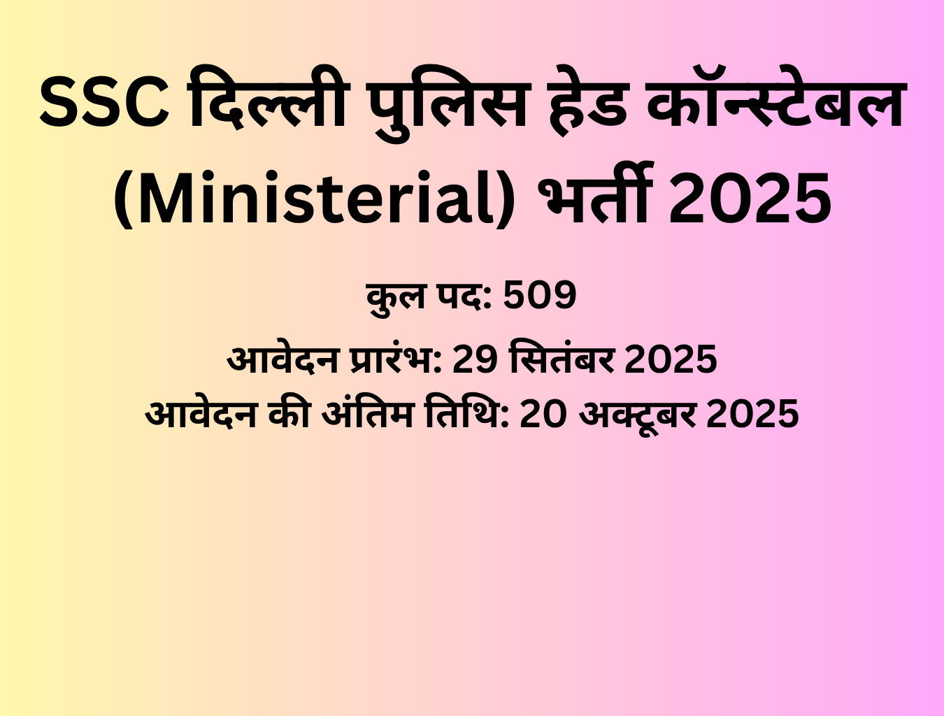 SSC दिल्ली पुलिस हेड कॉन्स्टेबल (Ministerial) भर्ती 2025
